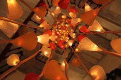 Enstalasyonun lambaları gökyüzüne ve güneşe yaklaştıkça meyveler gibi çoğalıyor. Aşağı katlara indikçe, mekan karardıkça seyrekleşiyorlar.